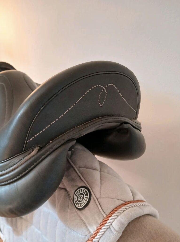 Sadeln köptes i oktober 2024 och har använts mycket lite. Därför har den knappt några tecken på användning och gjordstropparna ser nästan oanvända ut. Den är lämplig för ridning i dressyrarenan med längre stigbyglar men också för den lilla. Ridning på bana eller terrängridning. Mycket bekväm, stigbyglarna ger bra stöd.