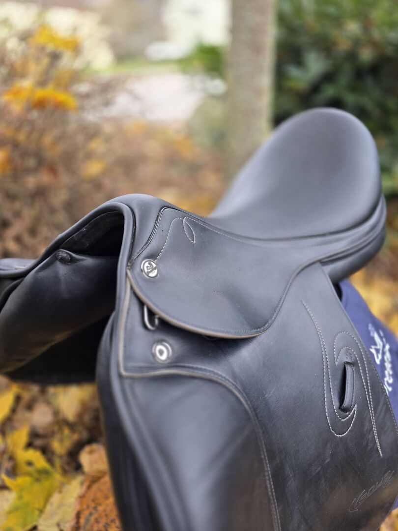 Prestige Venus Vss sadel 18/33 - Jag säljer min vackra, 2 år gamla Prestige Venuss VSS-sadel. Den är i mycket gott skick, men används för närvarande inte längre (byte till dressyr) och är bara för bra för att låta ligga kvar. Den visar små tecken på slitage, men dessa märks bara vid närmare inspektion. Den har ett 18-tums säte och en bredd på 33 mm.