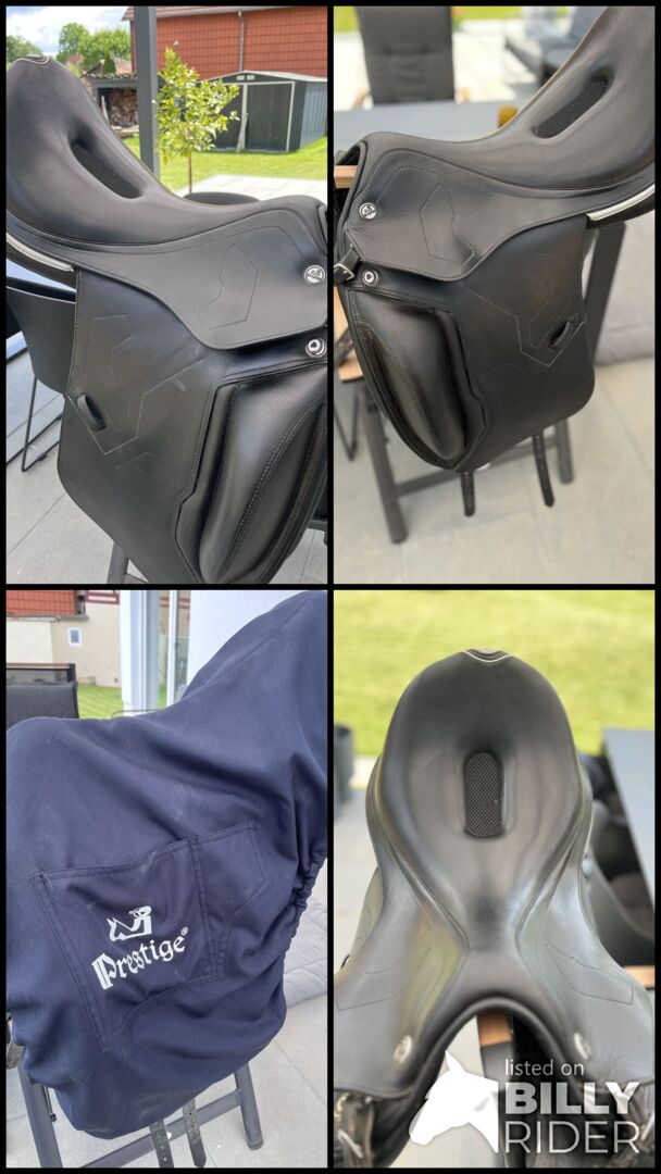 Detaljer om sadeln: - Märke: Prestige - Modell: X-Breath Dressage K Lux - Storlek: 17" - Färg: svart/silver - Sits: bekväm och välbyggd för medelstora till större hästar - Skick: mycket bra, väl underhållen, inga skador på läder eller paneler, har underhållits regelbundet - Tillverkningsår: 2020 - Speciella egenskaper: passar min häst mycket bra, paneler har aldrig justerats, lätt, andningsbart läder för bekväm ridning