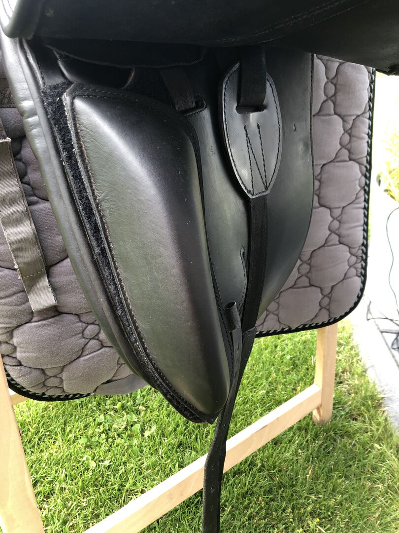 Den har ett mycket djupt säte som gör att du kommer underbart nära hästen, är utrustad med kardborrepaneler och har en något förklippt sadelklaff så att ryttare med längre ben (superflexibla i storlek tack vare kardborrepanelerna) också kan få plats på den.