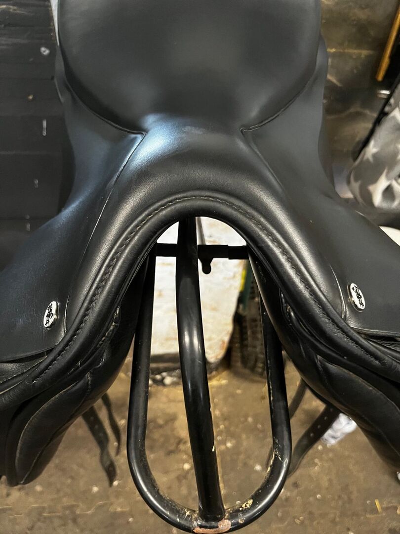 Prydi Switch GP dressyrsadel - 17,5" - Medium kotplatta - Jag säljer min välskötta Prydi Switch GP dressyrsadel med 17,5" sits och svart "medium" kotlettplatta. Sadeln köptes ny i juni 2022 (faktura finns tillgänglig).