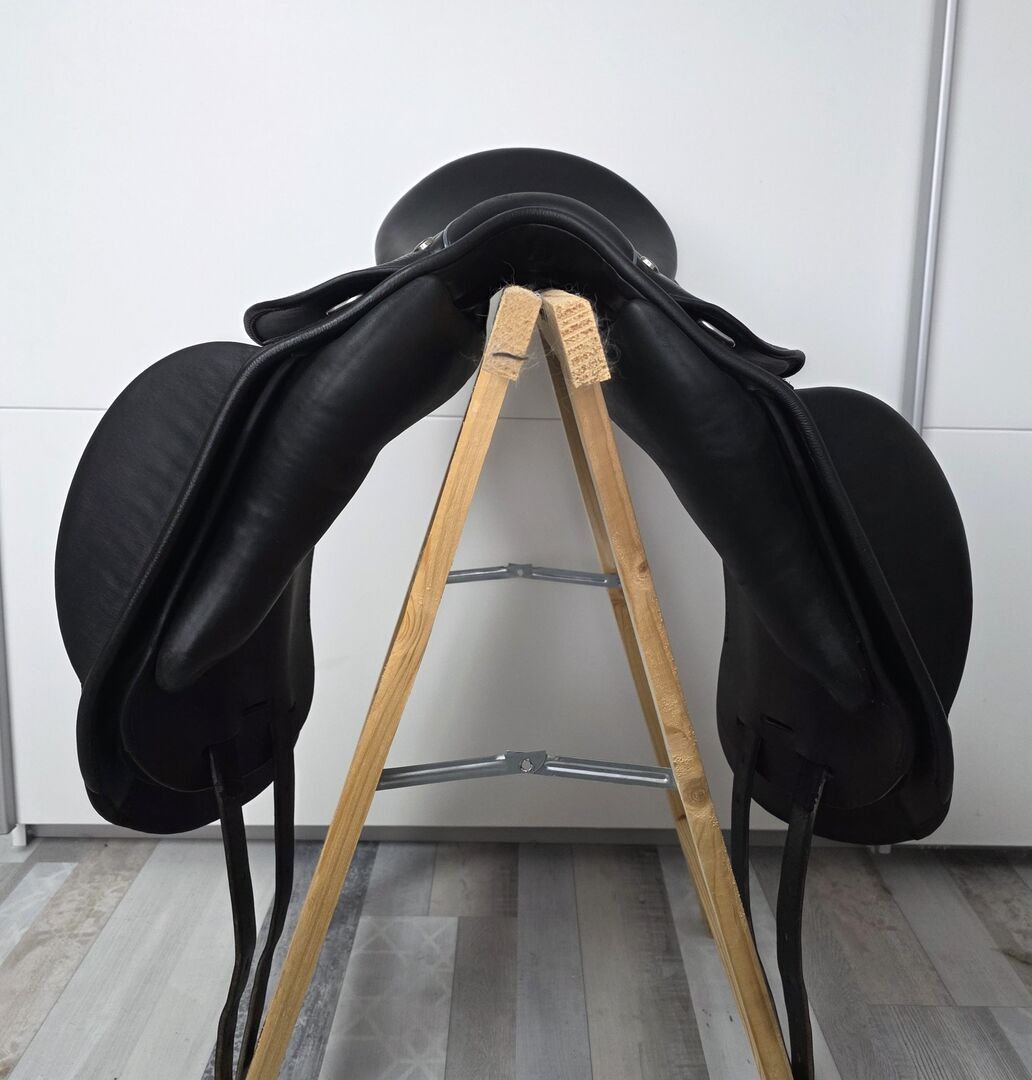 Tillverkarens beskrivning (https://www.ps-sattel.de) "Sport"-versionen är idealisk för ryttare som vill ha nära kontakt med sin häst tack vare den djupa, släta sitsen och den lätta stoppningen. Funktioner: - Utbytbara gaffelplattor - Breda, mjuka franska paneler för optimal tryckfördelning - Mjuka paneler i trapeziusmuskelområdet - Utbytbara stigbygelbommar med fixering