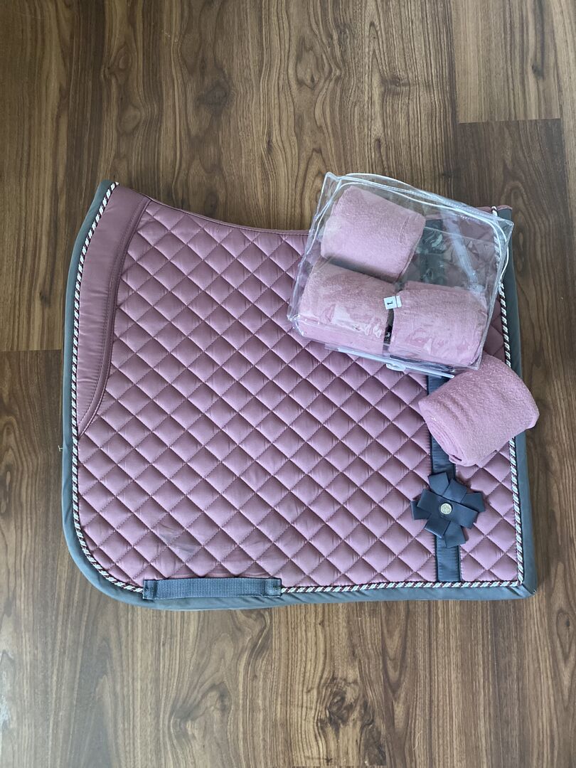 PS of Sweden Dressage Set Rose Berry - Jag säljer detta dressyrset från PS of Sweden i färgen Rose Berry. Setet har bara suttit på hästen 2/3 gånger, har tvättats och avhårats och är i utmärkt skick. - Dressyrsadelunderlag BOW Rose Berry (NP 80€) - Fleeceförband BOW Rose Berry (NP 35€) Försändelse möjlig till självkostnadspris