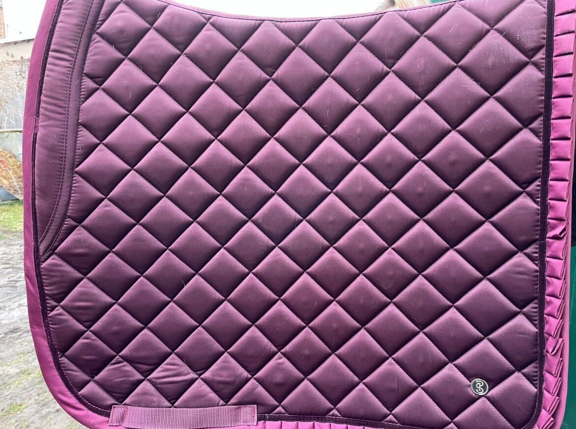 PS of Sweden Saddle Pad - Hej, jag erbjuder mitt PS of Sweden schabrak, som jag gillar men inte använder så ofta. Den är i storleken DL Full, i färgen Bordeaux. Den är så gott som ny då den inte har några skador. Jag säljer den då den tyvärr glider in under sadeln. Befintligt hår kommer att tas bort så gott som möjligt. Betalning via PayPal vänner och familj eller banköverföring. Frakt till full(!) kostnad (7,69€ försäkrad frakt), upphämtning naturligtvis också möjligt. Avsändning efter mottagande av betalning. Eftersom privat försäljning ingen garanti eller retur!