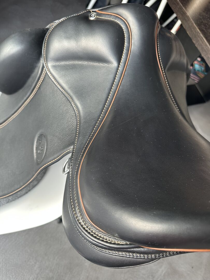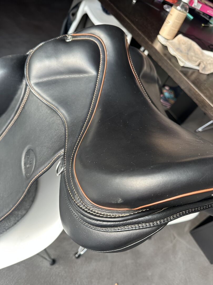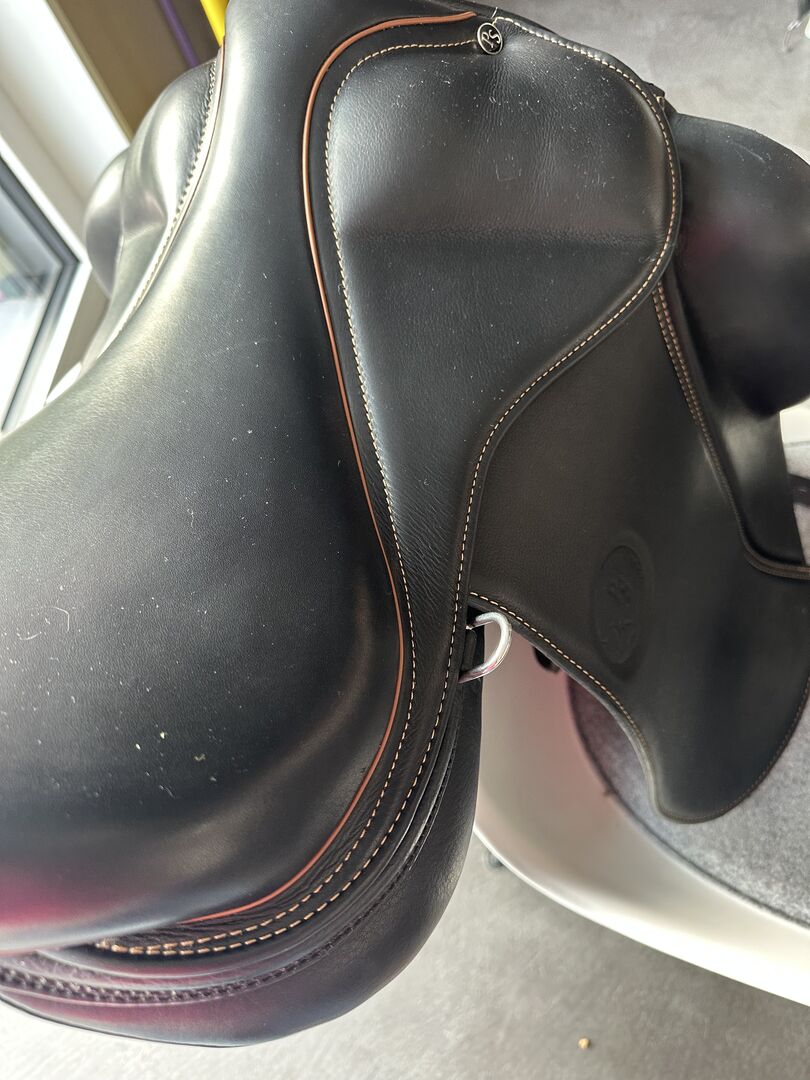 PS Sadel Glaumur Sport 17 tum som ny - Sadeln köptes 2023 och användes knappt, den har använts i kanske 3/4 av ett år. Av hälsoskäl arbetades vår isländska häst först bara på marken, varefter sadeln inte längre passade. Det finns 2 repor se bild, annars är det i toppskick. Det var också vadderat igen sommaren 2024.