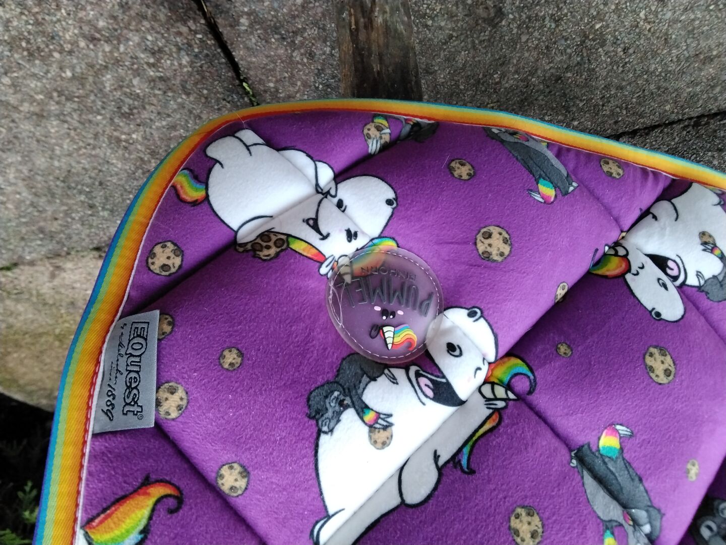 Pummeleinhorn sadelunderlag - Nytt, oanvänt dressyrsadelunderlag WB färg lila. Invändigt våffelpique