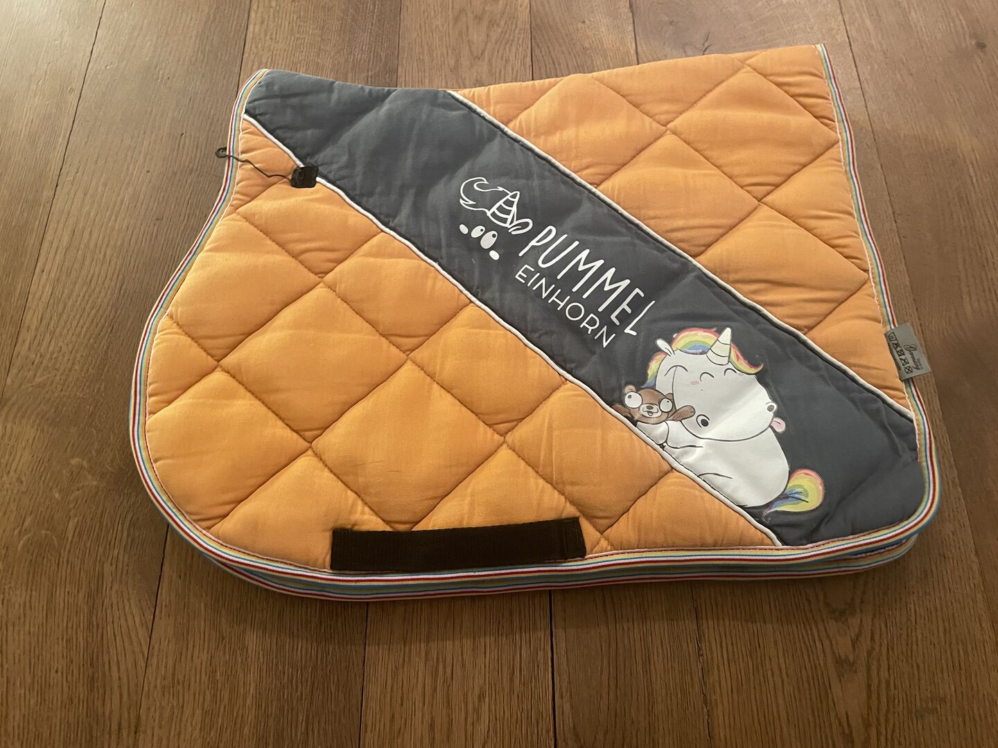 Pummeleinhorn Schabrack Orange Ponny VS - Hej på er, Vi säljer ett fantastiskt, mycket välbevarat ponnyschabrak av Pummeleinhorn. Schabraket är orange och storlek VS.