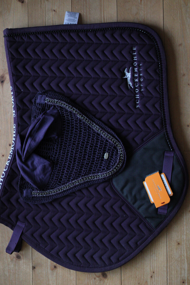 Purple Schockemöhle&Showmaster Set VS som Kentucky, eskadron,. - Till salu Ett Lilianes set bestående av ett nytt Schockemöhle schabrak i VS och en 1 gång använd flughätta från Showmaster i Cob.
