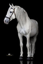 Puskas de Susaeta, PRE Pura Raza Espanola, hingst, 14 år gammal, grå - Puskas de Susaeta är vår absoluta superstjärna! Han är en enastående och mycket talangfull dressyrcrack som befinner sig på St George-nivå (PSG-nivå). Från första stund imponerar han med sin närvaro, sin förstklassiga konformation med en utmärkt överlinje och en enorm frihet i skuldrorna. Han imponerar också med sin speciella, flerskiktade karaktär. Puskas gillar att vara nummer 1 och vill ha odelad uppmärksamhet - han letar efter en värdig danspartner.