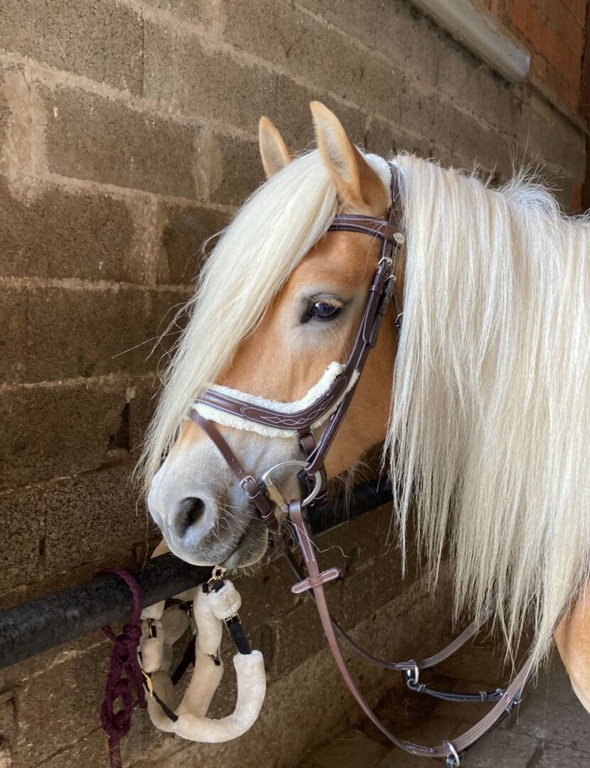 Super schicke Trense in braun, wenig getragen da sie meinem Pony nicht gut gepasst hat und frisch geputzt+gewaschen bei Kauf.