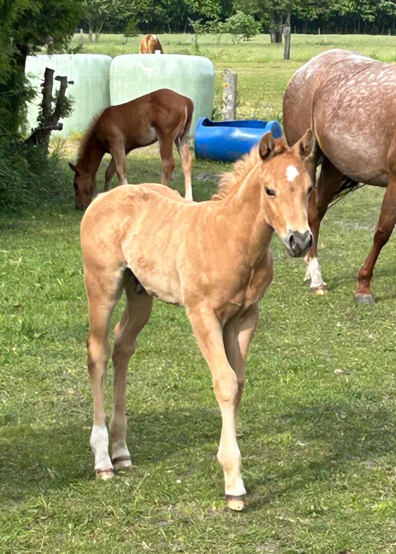 Quarter Horse-hingst - Fin Quarter Horse-hingst i palomino, född i mars 2025, till salu.