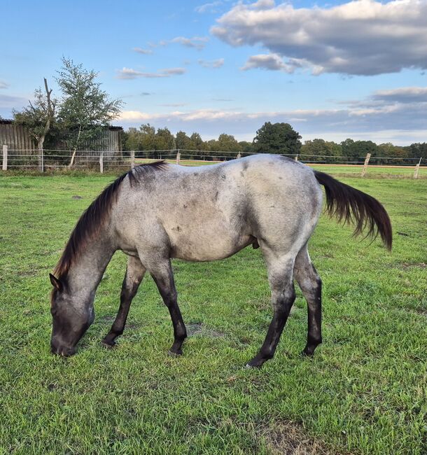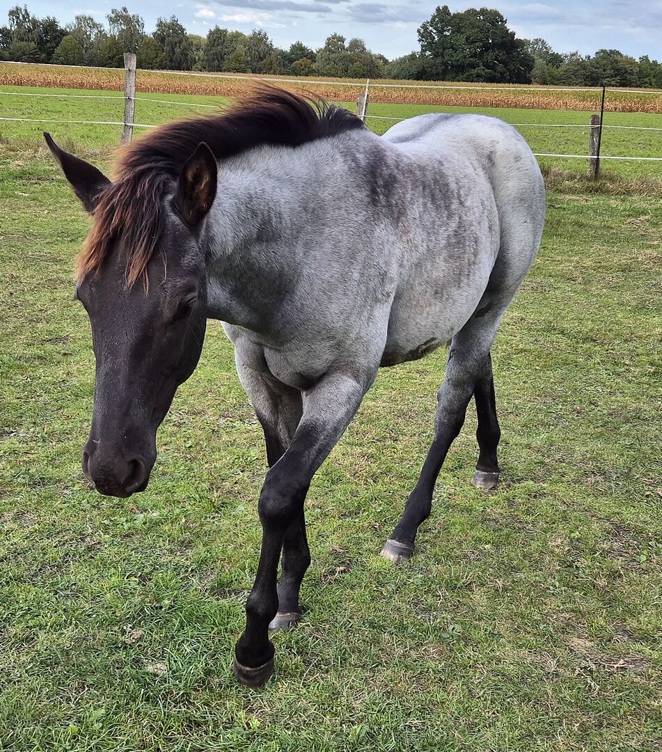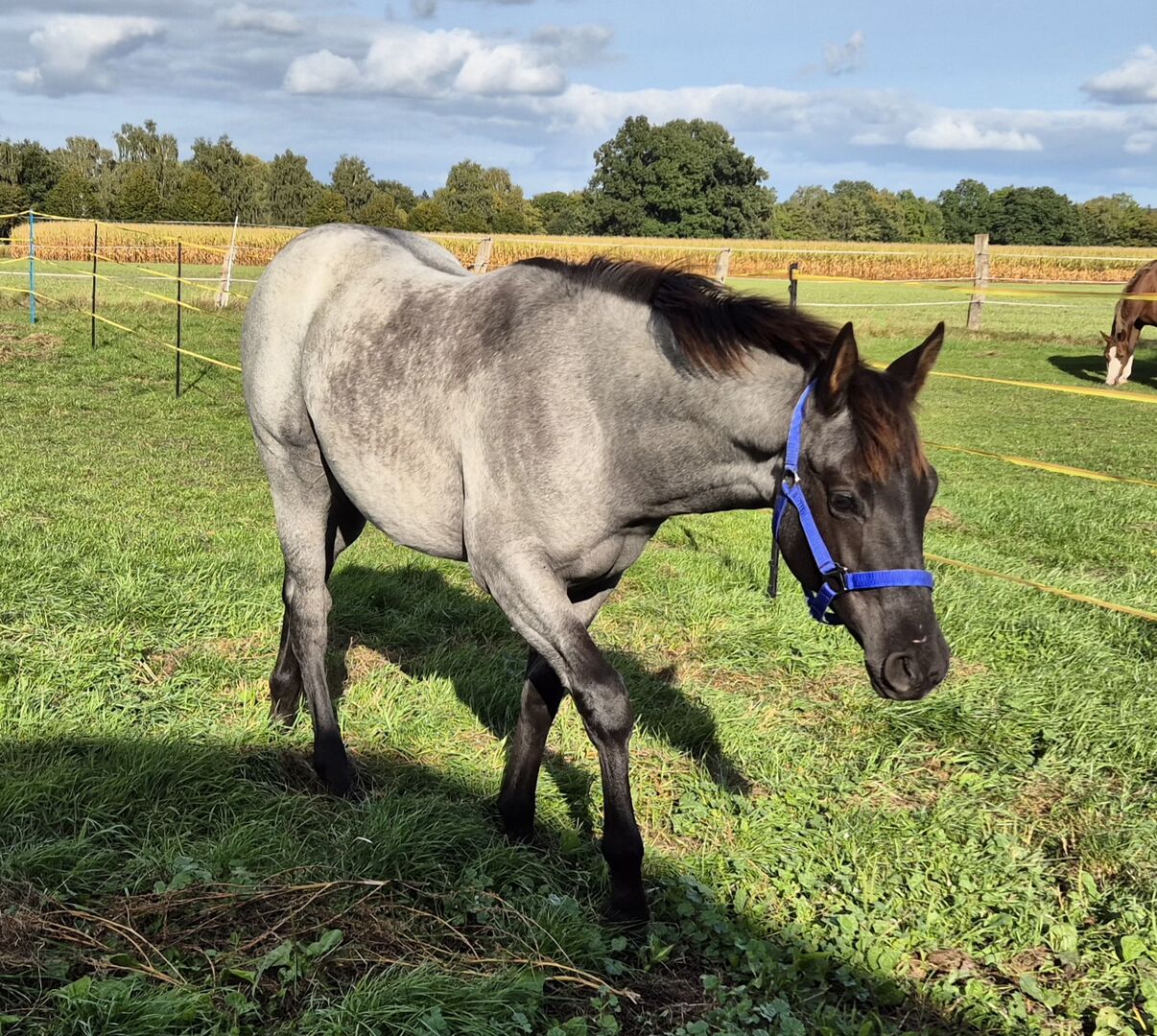 Quarter Horse-hingst från 01/2025, Blue Roan, homozygot Roan, Foundation - Om allt stämmer får Bobby flytta till ett nytt hem.