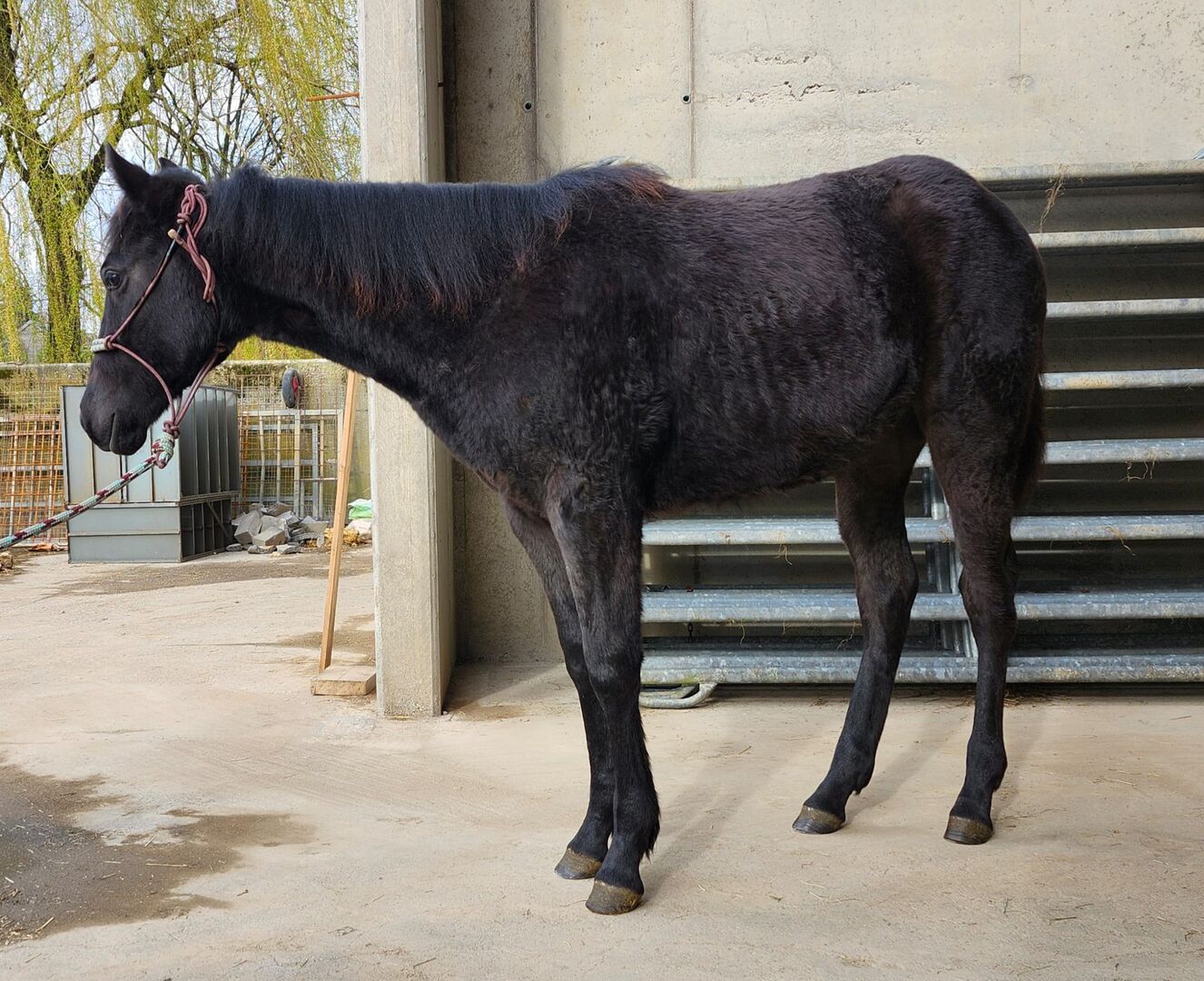 Quarter Horse-hingst åring med exceptionell stamtavla - Plats: 54668 Echternacherbrück Drifts To The Future är en vacker American Quarter Horse hingst åring, född 05.06.2025. Han är svart med bara några få hårstrån i pannan och genetiskt homozygot svart och homozygot agouti. AQHA-papper har ansökts, den förväntade sluthöjden är ca 162 cm. Den unga hingsten imponerar med sin korrekta exteriör, mycket goda utveckling, balanserade muskulatur och starka benstomme. Midnight kommer senare också att kunna täcka längre ryttare utan problem. Hans grundgångarter är bra och pålitliga, han lär sig snabbt och har ett balanserat, trevligt temperament. Karaktärsmässigt är Midnight en riktig pärla. Han är mycket människovänlig, alltid vänlig, lugn och avslappnad och är oftast den första som hälsar på dig vid grinden till hagen. Han vill vara till lags, är mycket väluppfostrad och alltid samarbetsvillig. Han växer upp i en flock, känner till grunderna för fölning, är haltertränad och känner både veterinären och hovslagaren. Han är frisk, regelbundet avmaskad och 6-panel n/n testad. När det gäller stamtavlan är han något mycket speciellt: han är den enda sonen till Drifts Chip i Europa och kommer från den berömda 6666 Ranch-blodlinjen, som är känd över hela världen för sin mångsidighet, prestationsvilja och ridbarhet. Detta gör honom mycket intressant inte bara för fritids- och tävlingssport utan också för avel. Oavsett om det är som framtida showhäst, sportpartner eller pålitlig fritidskompis - med sin potential för olika discipliner och sin exceptionellt snälla karaktär är Drifts To The Future ett verkligt löfte för framtiden.