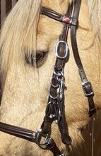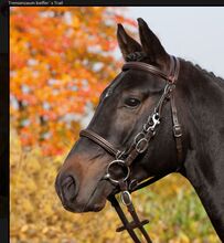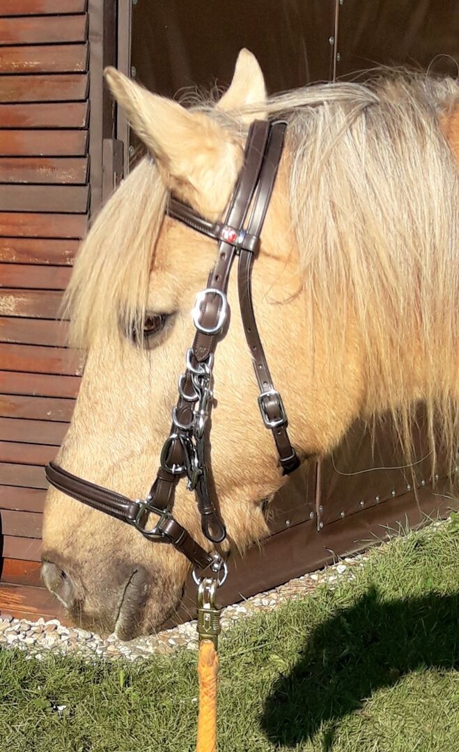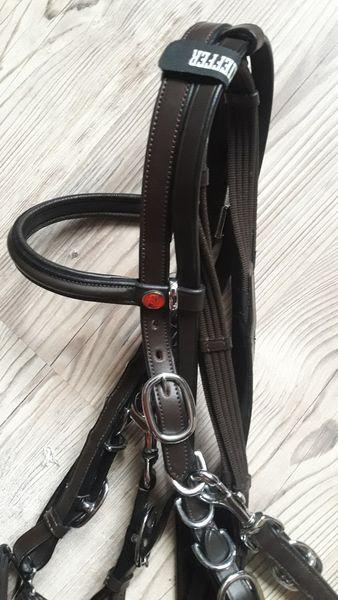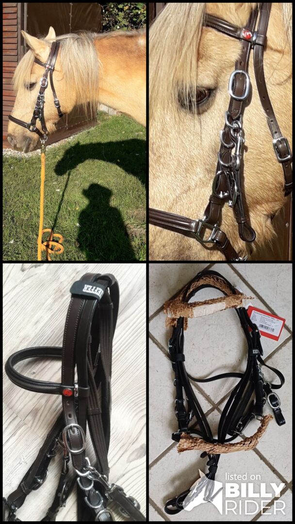 2-delad kombination av grimma och träns med tyglar, vandringsträns av mjukt premiumläder, fodrat vid nos och nosgrimma, utvecklat i samarbete med VFD (German Riders' Association).