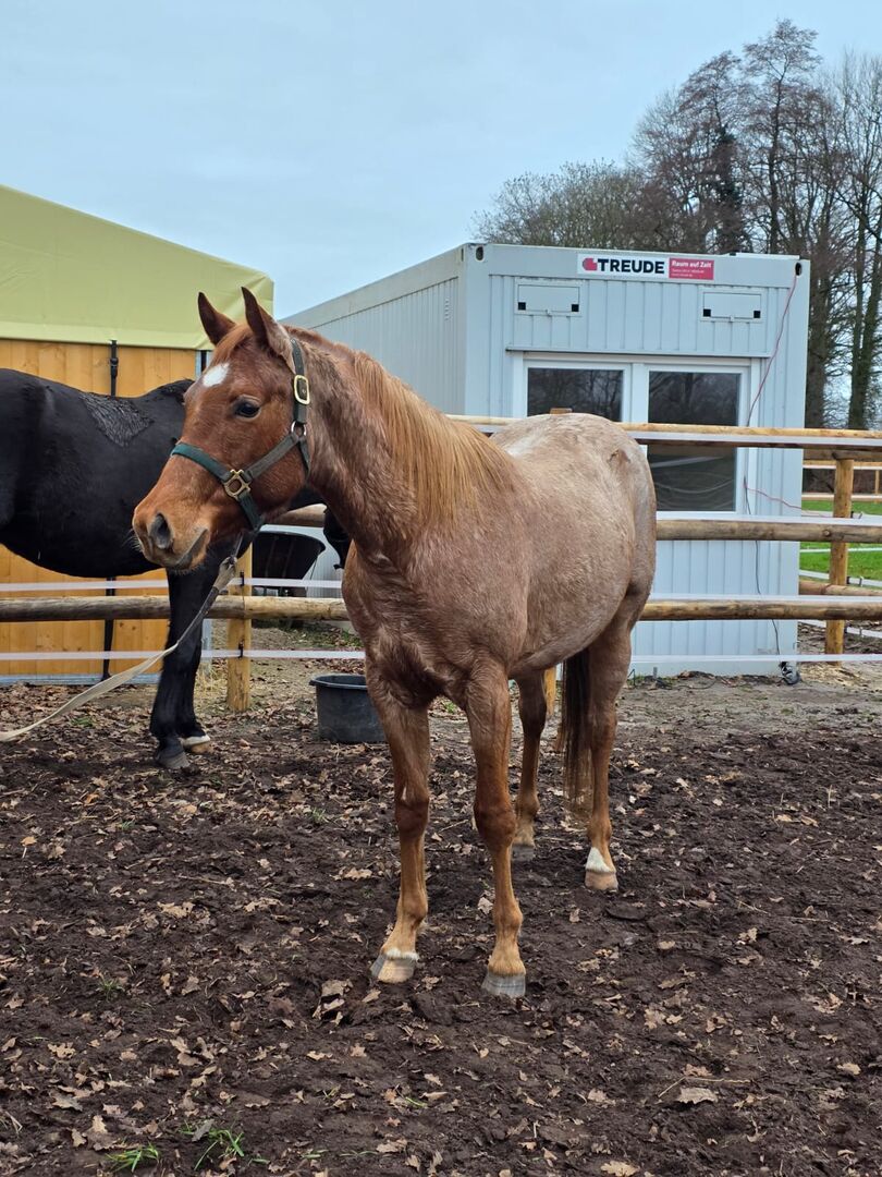 Red roan Quarter Horse-hingst med topp allround-stamtavla - Plats: 29308 Winsen (Aller) OH Trustfull Power - underbar, red roan Quarter Horse unghingst, född 5.2023 med en uppskattad slutlig storlek på 155 till 160 cm, med förstklassig allround stamtavla och en mycket härlig karaktär. Denna lilla pärla letar efter en ny utmaning. Hingsten är mycket öppen, människovänlig och härlig att hantera. Han går för närvarande på sommarbete och kan njuta av sin ungdom. Trusty är haltertränad och kan allt som en unghingst ska kunna och veta. Han är frisk och 6-panel n/n. Har tilldelats en fölpremie. Trusty imponerar inte bara med sitt utseende, han vet också hur man rör sig och visar talang för allroundridning. Han är en av de sista avkommorna efter Good Impulses, en Zippos Mr Good Bar-son efter en Hot Impulse-dotter. Trustys mor är en Doc Chex Brother-dotter. Hingsten är anmäld till EWU:s unghästprogram. Trusty är en talangfull unghäst som kommer att imponera i sport och som en lojal följeslagare. Även intressant för avel.
