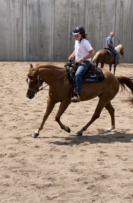 Hon har redan varit ute och ridit, är otroligt orädd och okomplicerad och är mycket villig att lära sig.