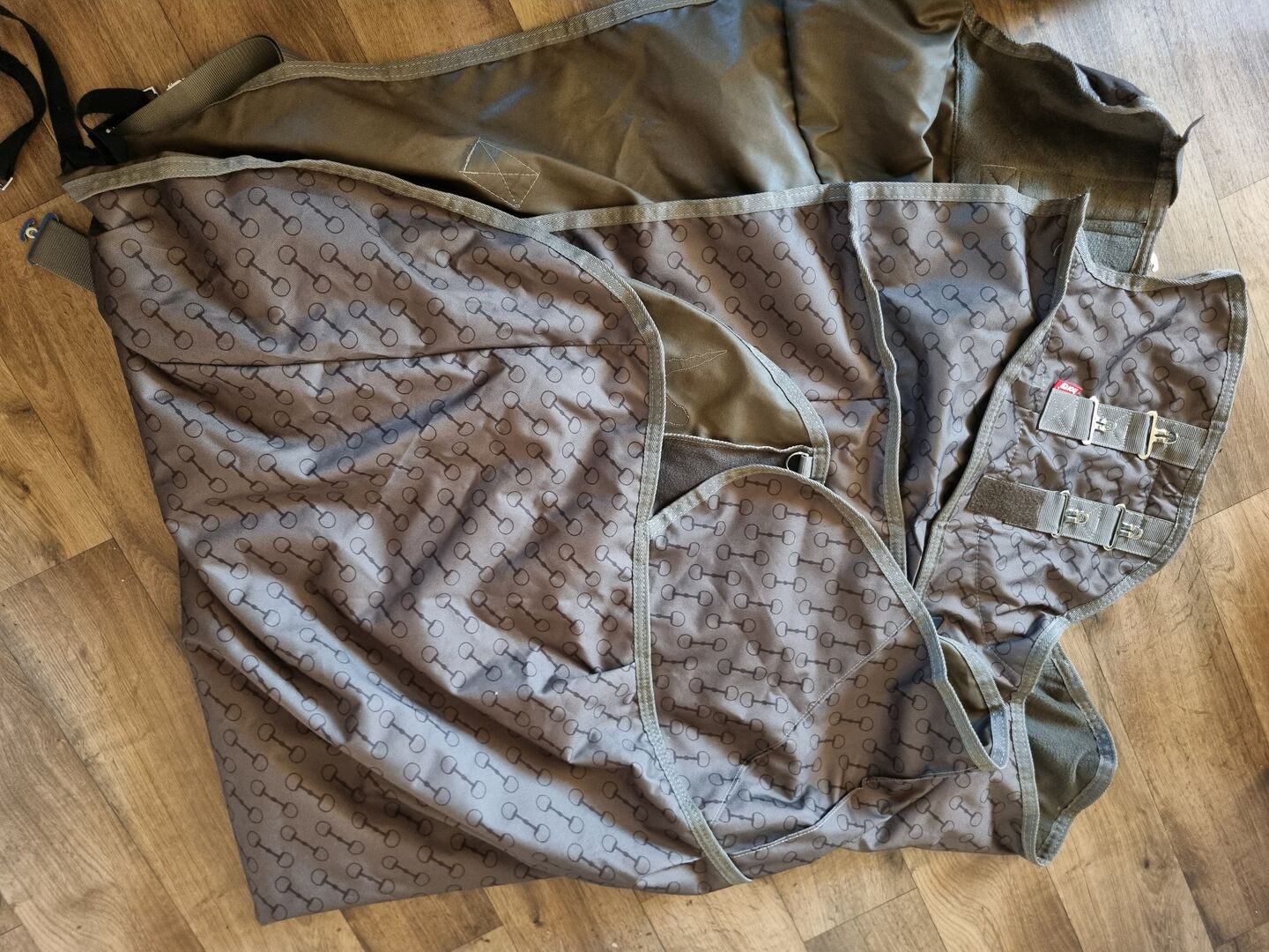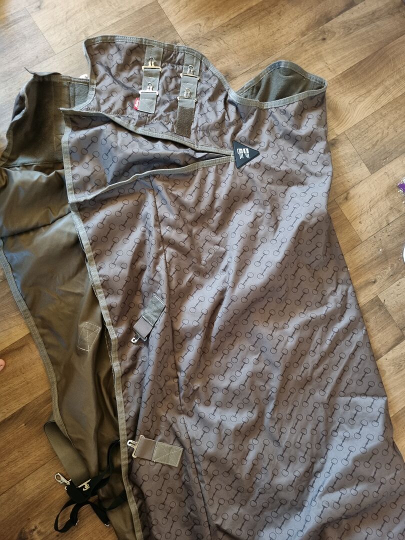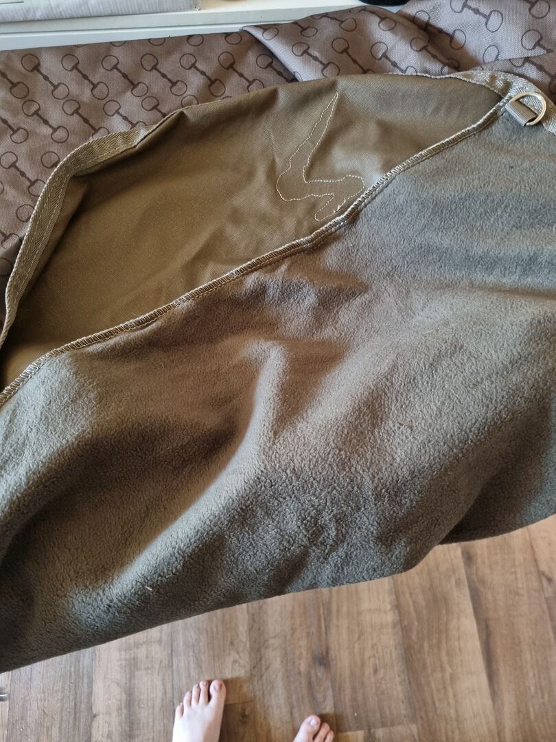 Regnskydd med fleece - Säljer regnfilt med fleece i storlek 135cm. Det är en höghalsad filt med magband och bensnören.