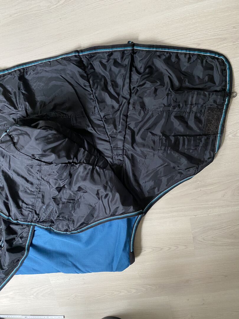 Regntäcke 135 cm - Regnmatta lätt fodrad med fleece 135 cm Vindtät Vattentät Två magremmar, två benremmar Rengjord och vattentät Privat försäljning, inga returer och ingen garanti