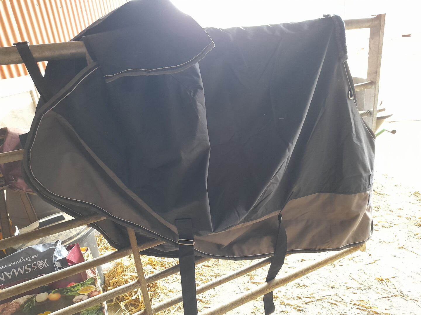 Regntäcke med fleece till salu - Hej Jag säljer betesmattan med fleece inuti i 125cm. Det har inte tvättats och säljs otvättat. Eftersom det inte passar min häst 100% och bara var på det i några veckor (ca. 3-4 veckor) förra vintern / våren. Inga defekter åtminstone inga som jag känner till / märkte.