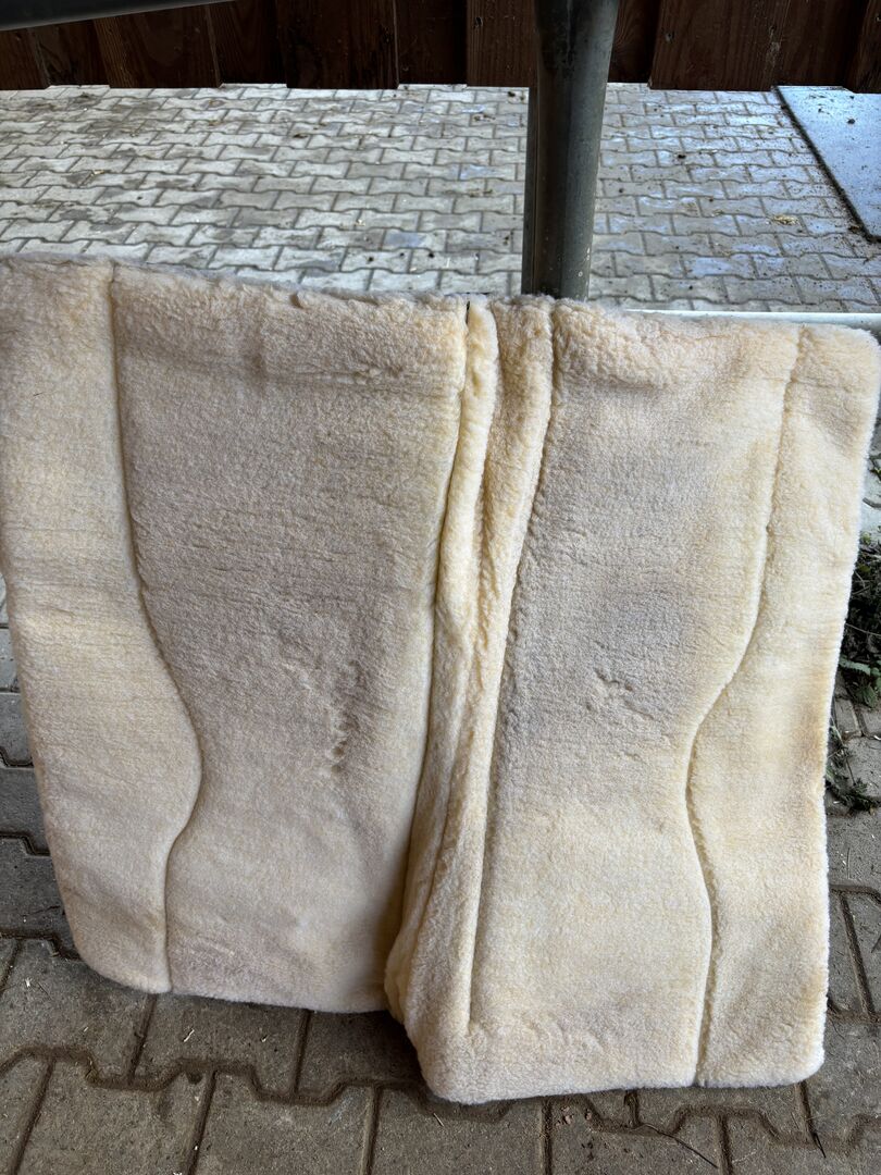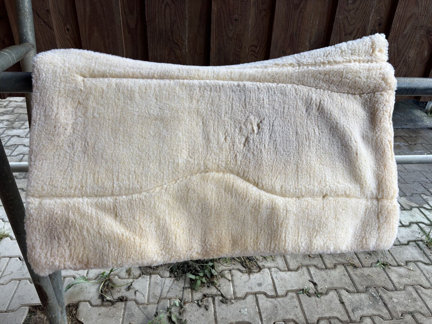 Korrektionskudde med skumvaddering som blir tjockare in mot mitten Ovansida av mikrofiber Undersida av päls För hästar med svajig rygg Varianter: