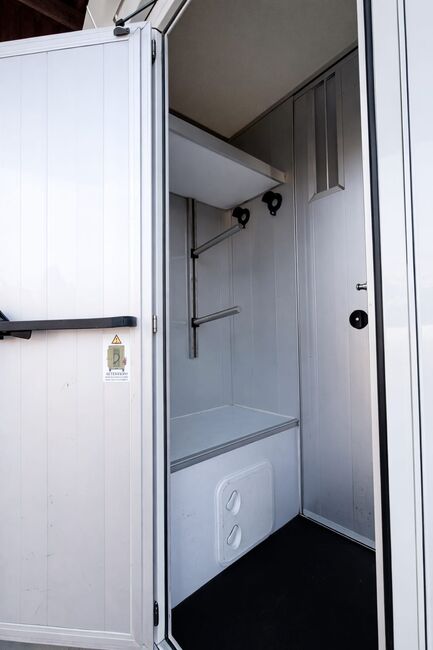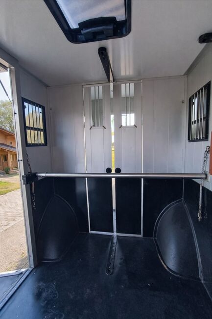 Transportören erbjuder praktisk och hästvänlig utrustning som säkerställer en trevlig och säker resa för både föraren och hästarna. Ytterligare foton kan skickas på begäran.