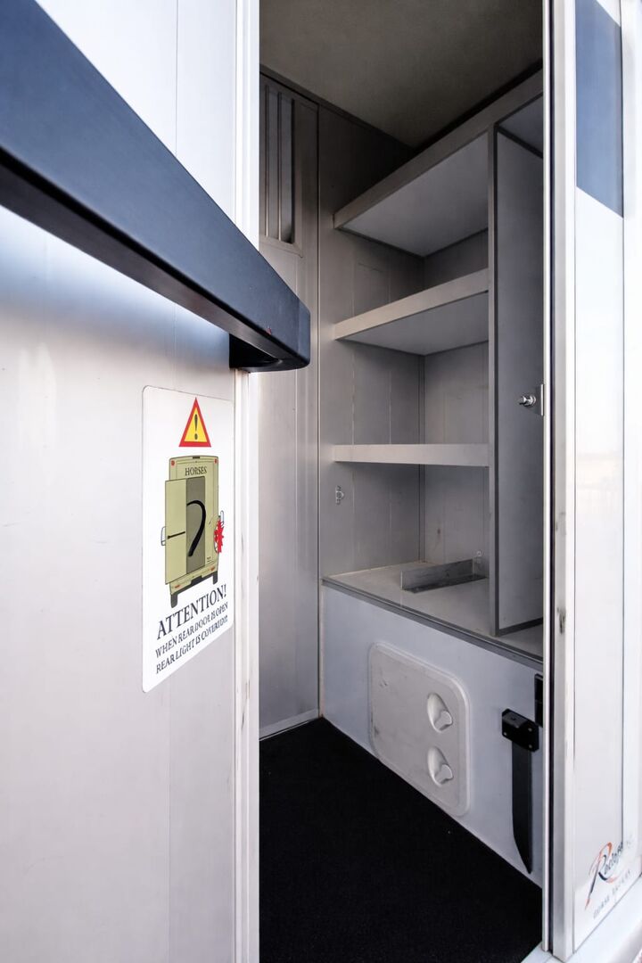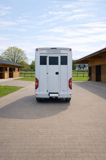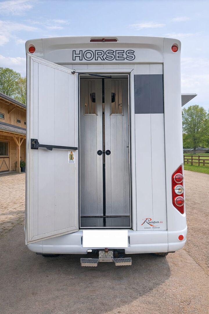 Utrustningen i korthet: - Manuell växellåda, höjdjusterbar ratt - Backkamera för bekväm manövrering - Extra kamera för övervakning av hästområdet under körning - Blått ljus i förarutrymmet och i hästutrymmet - 2 takventiler + takfönster och 2 fönster med galler i hästutrymmet - Gummibeläggning på rampens golv och på väggarna - Skjutbar skiljevägg, med PVC-matta (kan skjutas ända fram till väggen) - Version Stallion, dörrar med galler mellan hästavdelningen och sadelkammaren - Sidoramp på höger sida för enkel och säker lastning - Stort sadelkammare bak med gott om förvaringsutrymme för utrustning inklusive sadel- och tränshållare, med separat belysning - Släpvagnskoppling med 2,5 ton - Robust och beprövad Roelofsen-kaross - Förvaringsutrymme ovanför hytten med skjutdörrar (kan lastas från hästutrymmet) - Bränsletank 80 liter - Mått LxBxH i mm 6200x2100x3050