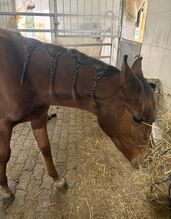 Han är bekant med boxuppstallning och öppen uppstallning. Han kommer bra överens i flocken.