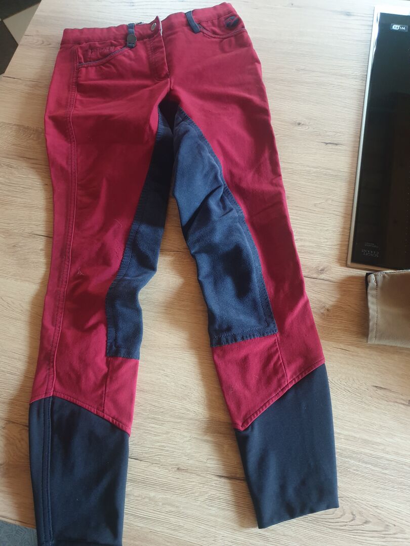Ridbyxor för damer - Till salu mycket välbevarade byxor i mörkrött/mörkblått från Busse i storlek 36, med en vacker applikation med glitter på bakfickorna.