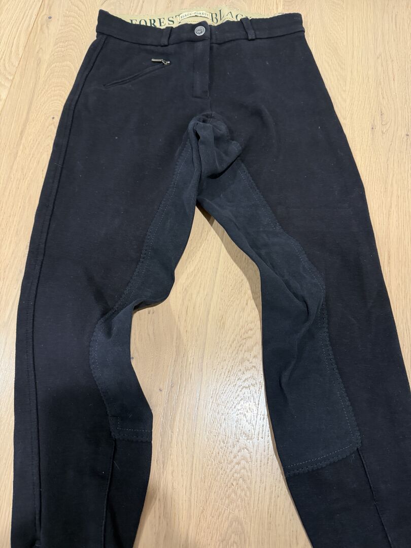 Ridbyxor mocka 36 - Vi säljer ett par ridbyxor i svart mocka. Insidan är klädd med läder i storlek 36. Byxorna är som nya eftersom de knappt har använts.