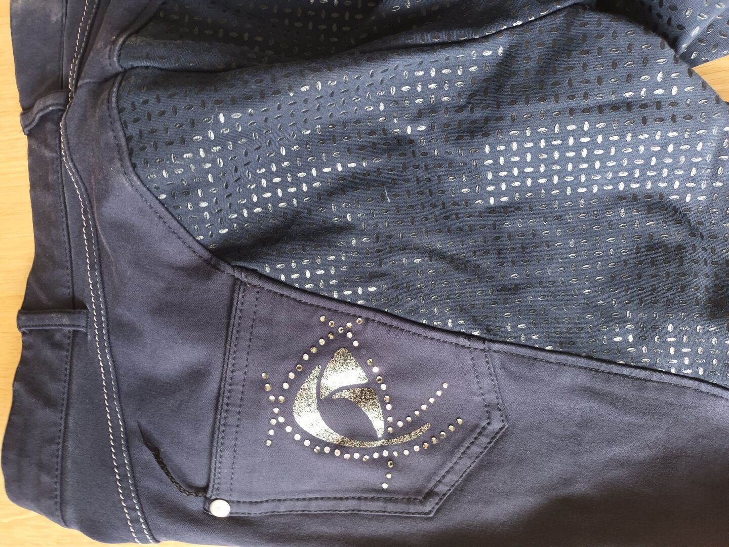 Med 3/4 sätesinsats och vadderade sömmar samt snygga strassapplikationer.