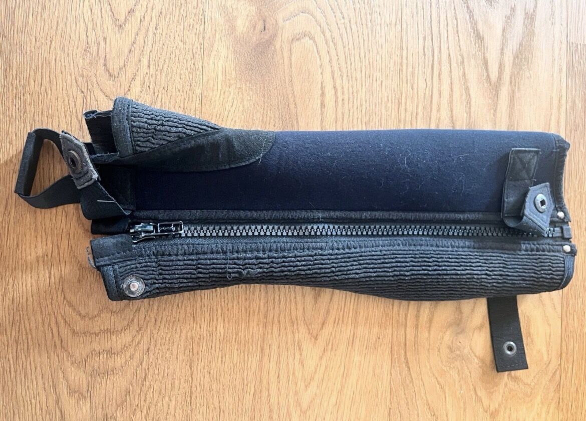 Ridchaps storlek XS - Säljer mina chaps, tillverkade av elastiskt neoprenmaterial, från det egna varumärket Loesdau. Chapsen har läderimitation på vadkanten och är i gott skick. Nytt pris 30€.