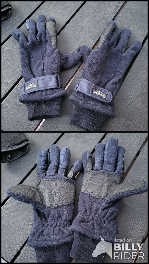 Ridhandskar för vintern - Jag säljer mörkblå begagnade vinterridhandskar i storlek L. De har några tecken på slitage på konstlädret på insidan av fingrarna.
