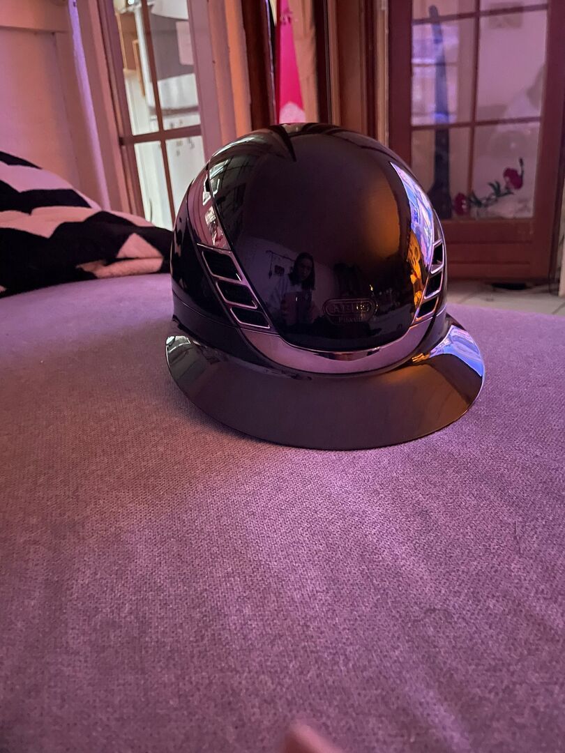 Ridhjälm AirLuxe Chrome Longvizor, Shiny Black - Vi säljer denna vackra hjälm eftersom den helt enkelt är för liten. Den har bara använts 2 gånger Storlek S 53-56cm STURZFREI!!!