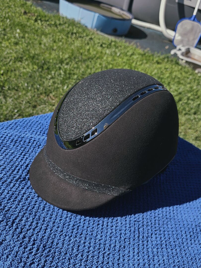 Ridhjälm från QHP - Jag säljer vår dotters QHP ridhjälm eftersom den har blivit för liten för henne. Den har några tecken på användning men du kan knappast se dem. Hjälmen levereras med en dyna för insidan. Np 65 €.