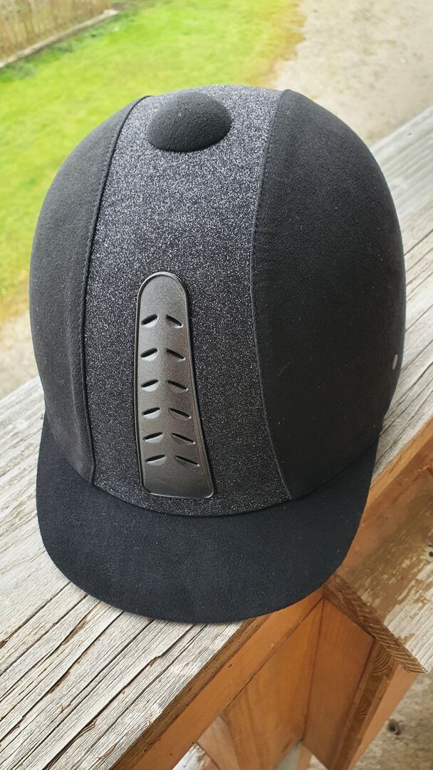 Jag säljer en svart ridhjälm (med glitter) från Knightsbridge i storlek 55.