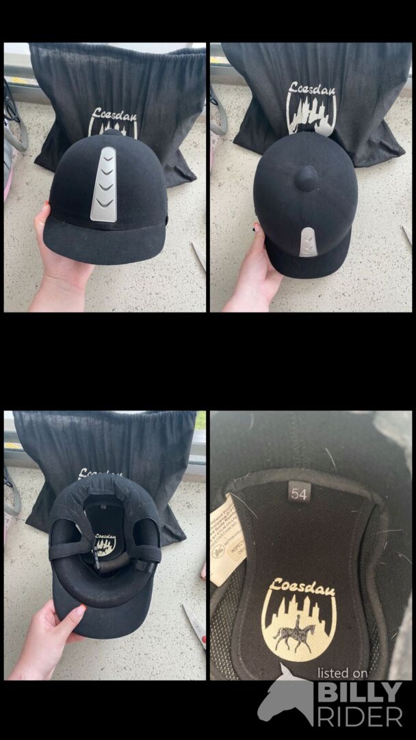 Ridhjälm storlek 53 - Ridhjälm från Loesdau i storlek 54, bars också som barn på lektioner och har nu legat i källaren under lång tid. Om du torkar den en gång fuktig ser den ut som ny!!!