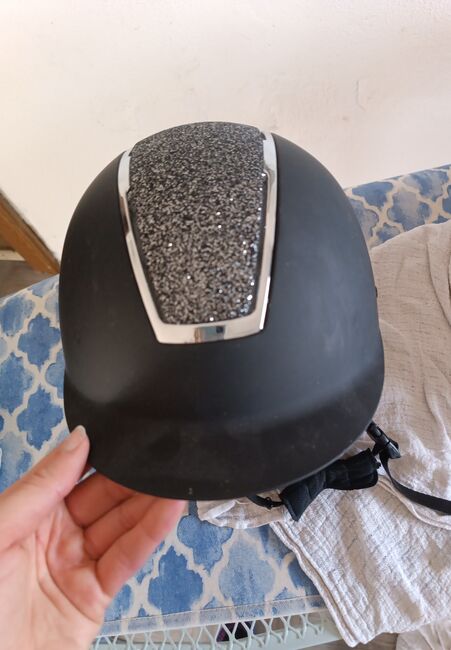 Ridhjälm svart med glitter - storlek M - mycket bra skick - Jag säljer en svart ridhjälm med glitter i storlek M. Hjälmen har endast använts lite och är i mycket bra skick. ✨ Chic design med glitter Storlek M ✔️ Justerbar för en bra passform ✔️ Inre stoppning ren och väl underhållen Hjälmen är perfekt för ridlektioner, fritids- eller tävlingsträning. Privat försäljning, därför ingen garanti eller retur.
