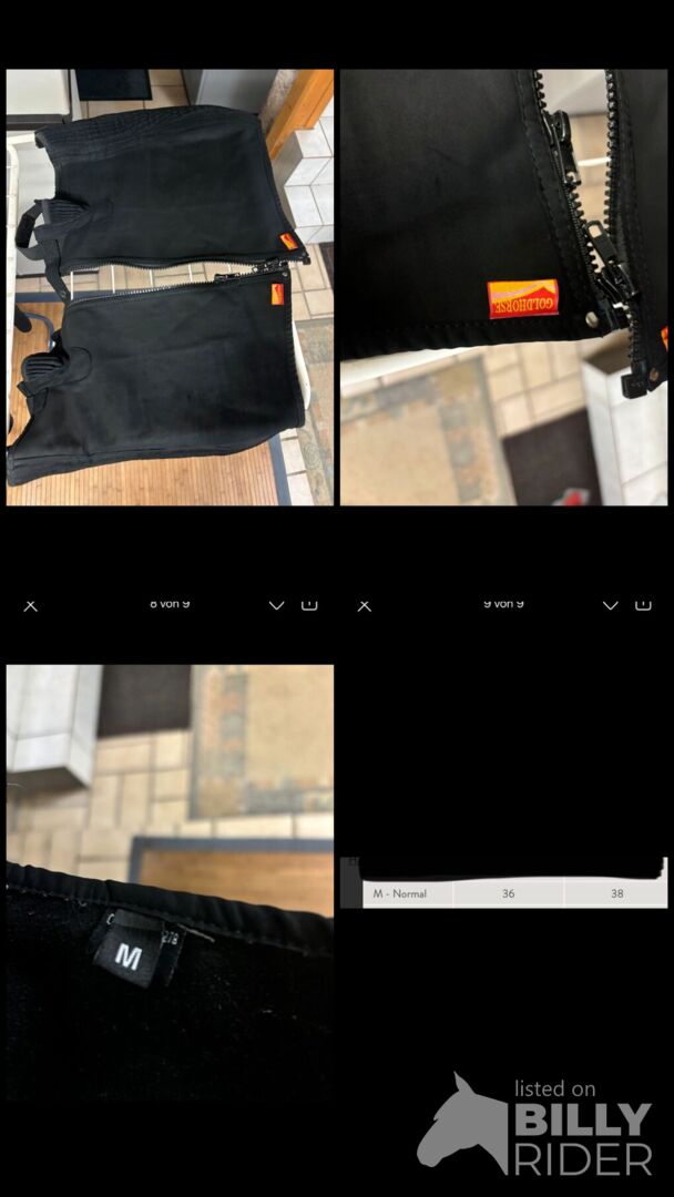 Riding Chaps - Till salu här ett par chaps från Goldhorse i storlek M-Normal (se bild) chapsarna kan även bäras om du har en 41 vad på grund av den elastiska insatsen. Höjden är 36 cm