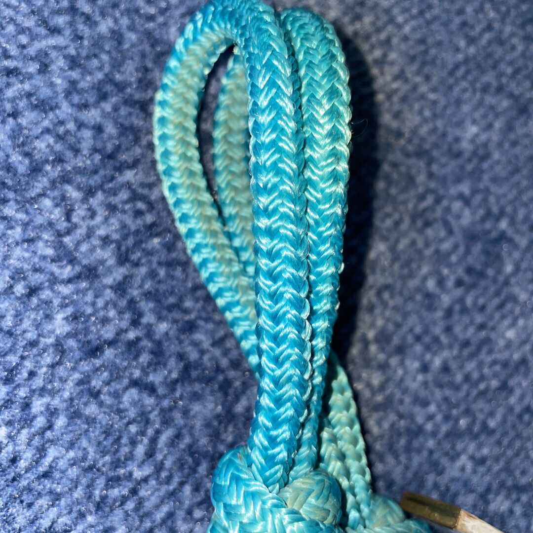 Türkisfarbenes Reithalfter mit Gebrauchsspuren