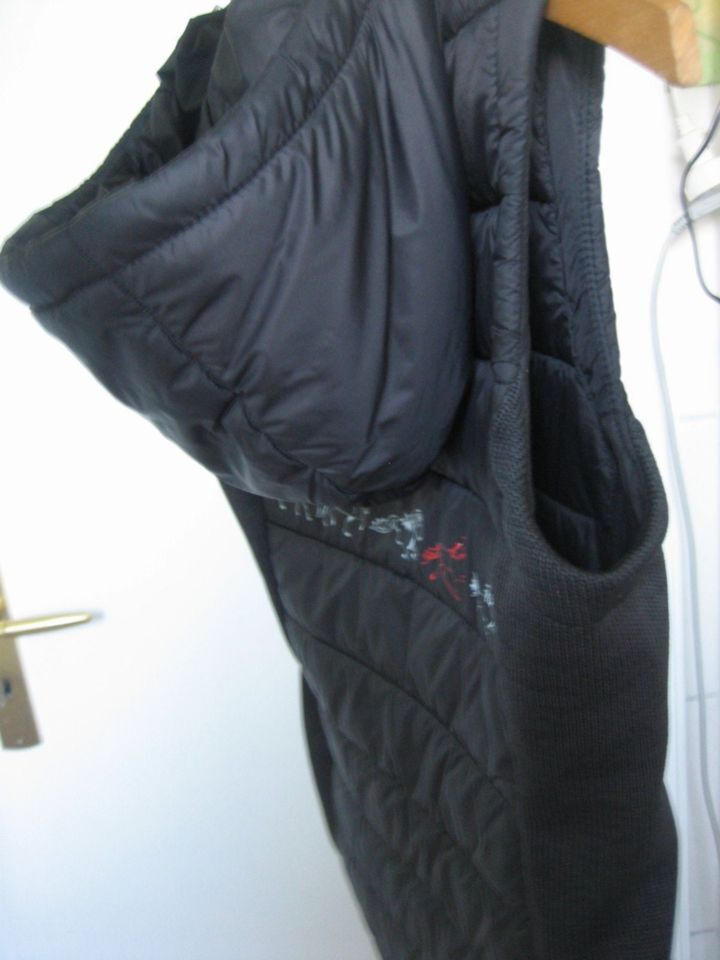 Riding Vest Karlslund Hooded Vest Down Vest Top Rider - Hej, kära islandshästvänner, Jag vill sälja denna kombinerade ridväst med huva i storlek XS, som jag själv har designat och tillverkat. Den är helt unik och den som känner till det isländska ridmärket Karlslund vet att det inte finns någon ridväst. Västen har en tvåvägsdragkedja, två fickor med dragkedja och huvan fästs med en tryckknapp så att den inte fladdrar runt i galopp. Den har Karlslunds logotyp på framsidan med islandshästar i tölt och islandshästens fem gångarter på baksidan.