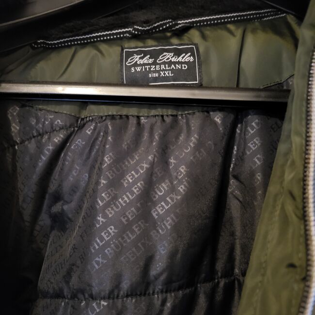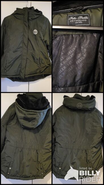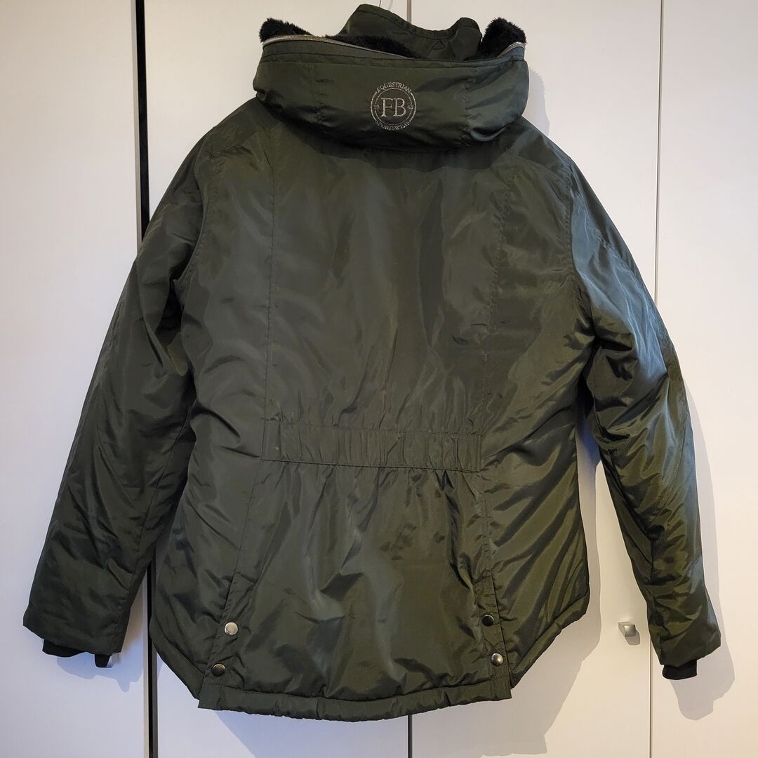 Ridjacka för damer - Jag säljer min eleganta och lite slitna dam vinter / övergångsridjacka från märket Felix Bühler storlek XXL i en elegant grön med en lätt pärllook. Den har en huva som kan förvaras i kragen.