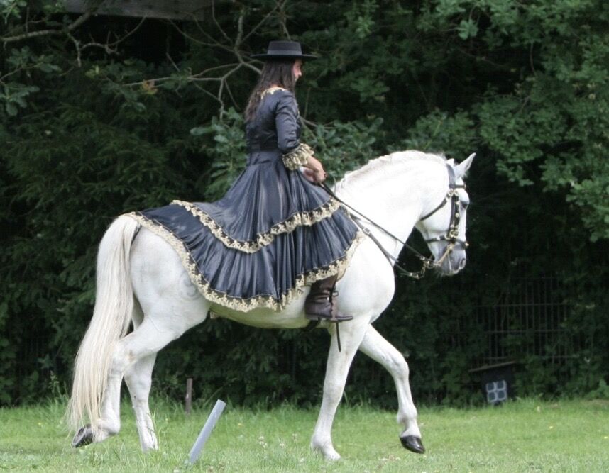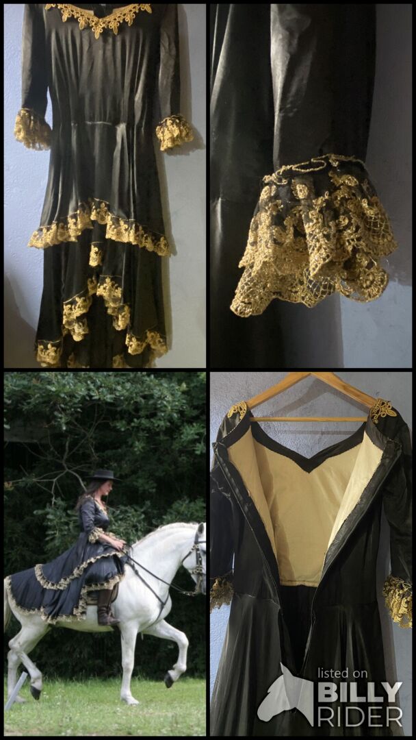 Ridklänning i barockstil - Till salu barock silke ridklänning storlek M svart med gyllene spetsar Jag har bara använt den två gånger Skick - mycket bra utan hål eller defekter.... Tyvärr passar det mig inte längre Jag har också en tysk adress för frakt !!!