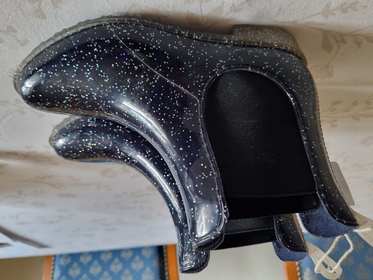 '? Gummistiefel halbhoch schwarz mit Glitzer'
