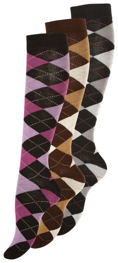 Ridsockor i bomull med diamantmönster storlek 35/38, 3-pack, nya - Ridsockor i bomull med diamantmönster i 3-pack