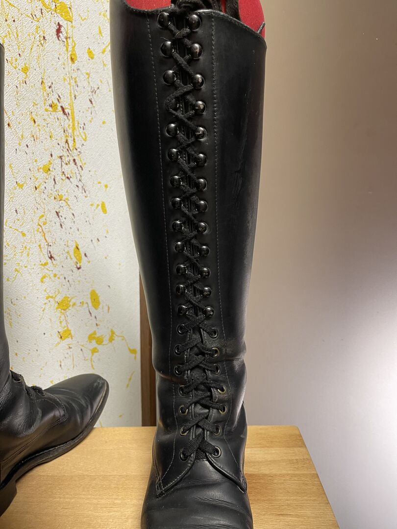 tillverkad av boxcalf fodrad med kalvskinn och helt snörd upp till toppen. fäst tåhätta. sula i äkta läder, med ramsor Komfort fotbädd Stövlarna har normala slitspår Storlek: 4 1/2, H46/W43 Svart
