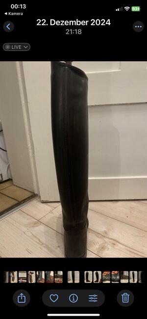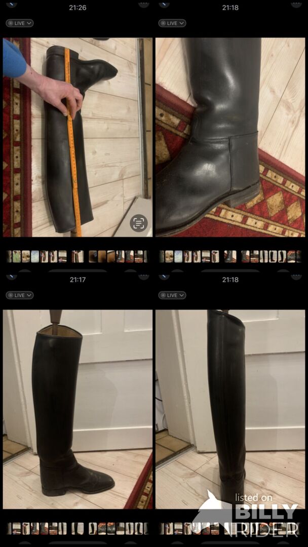 Ridstövlar i läder för damer - Det speciella med de här stövlarna är längden på skaftet. De tillverkades eftersom jag är 1,80 meter lång och inte ville fastna under sadelklaffen. De har använts väldigt lite eftersom jag var tvungen att sluta tävla på grund av min hästs sjukdom.