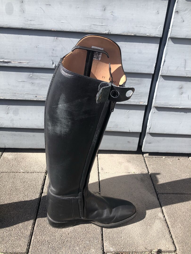 Ridstövlar med Blingbling - Sälj vackra lite slitna ridstövlar från Petrie! Storleksmåtten kan ses på den sista bilden, de är storlek 38 45/37. Stövlarna har en lång dragkedja framtill som är typisk för dressyrstövlar! De visar normala tecken på användning. Försäljningen sker under uteslutande av allt ansvar för materialfel! Jag skickar dem gärna till dig mot betalning av fraktkostnaderna! Ge mig ett rimligt bud för stövlarna!
