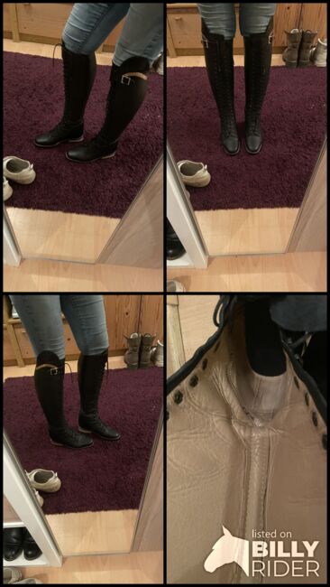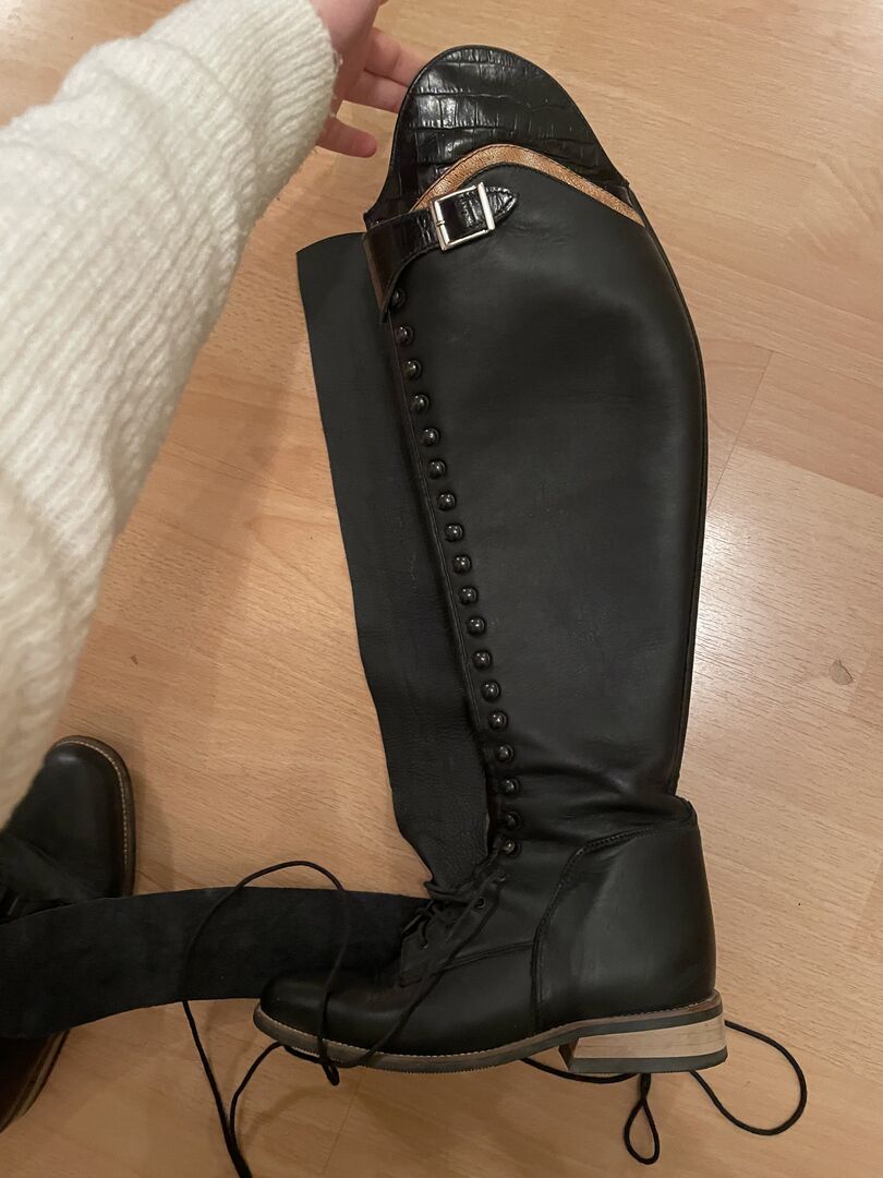 Ridstövlar med snörning från Healthy horses - Stövlarna har knappt använts (kanske 10 gånger) eftersom de är för bra för daglig användning i det öppna stallet. Nypriset var 600€ + tungorna förnyades av skomakaren, eftersom de ursprungliga var mycket tunna, så att inget kan rivas här.