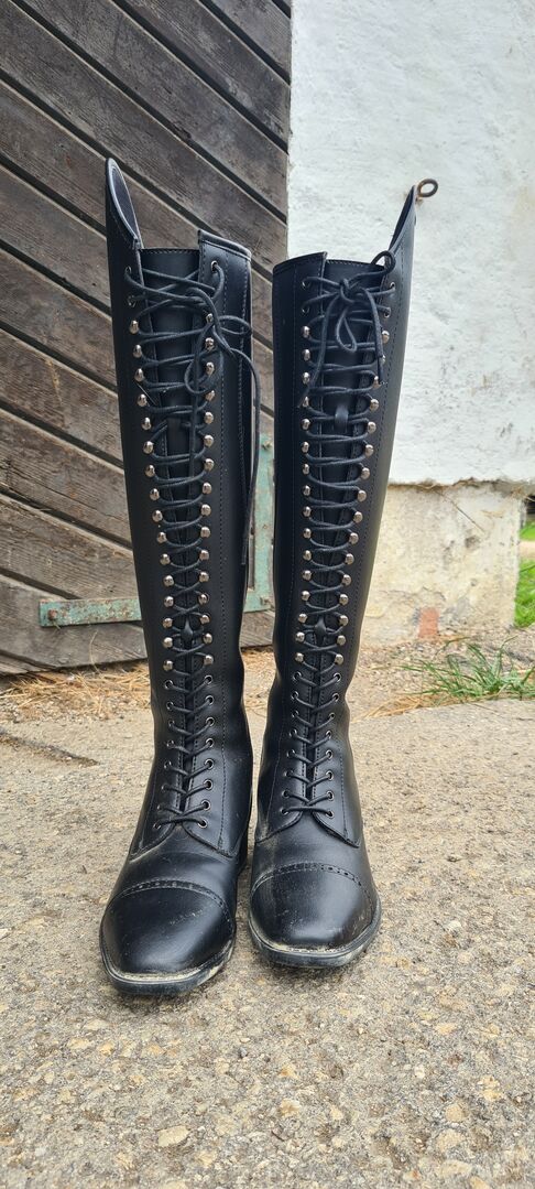 Ridstövlarna imponerar med sin anatomiska form och eleganta derby snörning. Med dragkedja på baksidan med elastisk insats. De extra glittersnören är en speciell höjdpunkt.