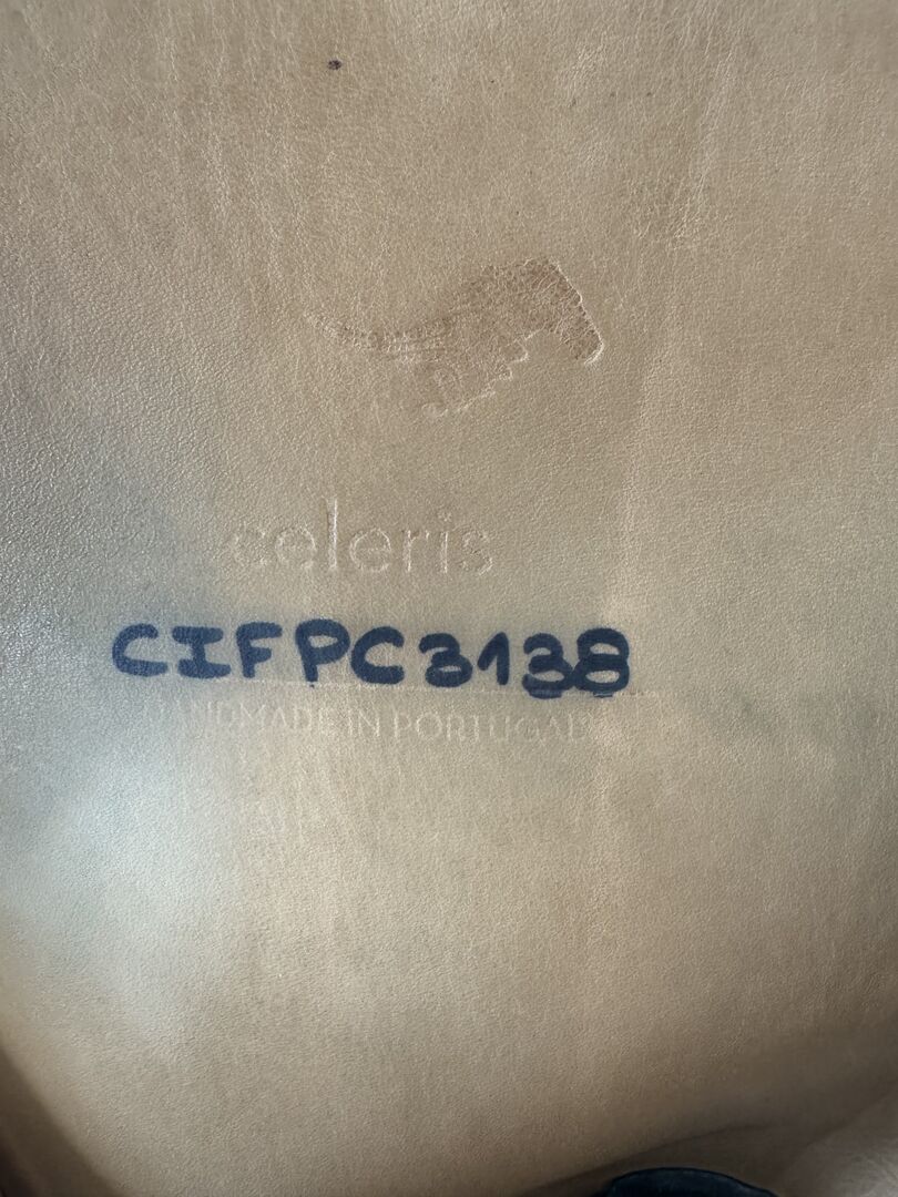 Varumärke: Celeris Modellnummer: CIFPC3138 Färg: svart storlek: 40 cm vad: 45 cm Skafthöjd: 44 cm Material: kalvskinn Typ av skaft: Mjukt skaft Ursprungligt pris: 600 euro Stängning: Dragkedja baktill, med snörning på vristen Skyddsspänne med dragkedja och tryckknapp